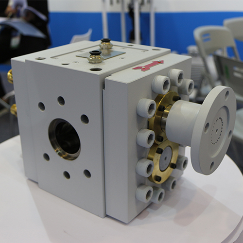 回流槽一端靠近導流槽小端但不接穿,回流槽從軸套的一側壁延伸至軸套的外側壁。軸套一對對稱設置分別對應主動軸和從動軸,兩個軸套的回流槽對應設置,回流槽形成回流孔。采用本結構的軸套設置在泵體的主動軸和從動軸上,軸套和軸做相對旋轉運動,泵體內的熔體一小部分通過導流槽大端滲入到軸套內孔壁內起到很好的潤滑作用,滲入到導流槽內的熔體從導流槽小端流出,流入到相近的回流槽內,該部分自潤滑的熔體在泵內外壓差的作用下回流到泵體的腔體內,實現一個自潤滑的循環(huán),可以減少軸套和軸的磨損,保持熔體泵長期穩(wěn)定的運轉。